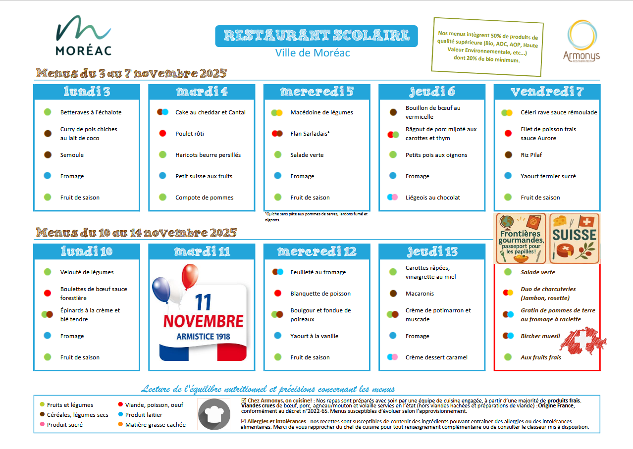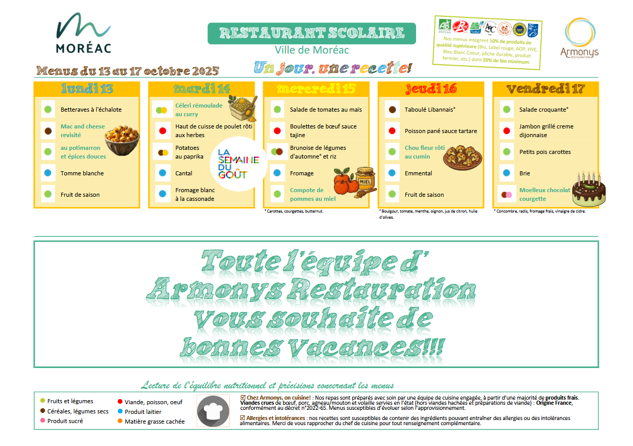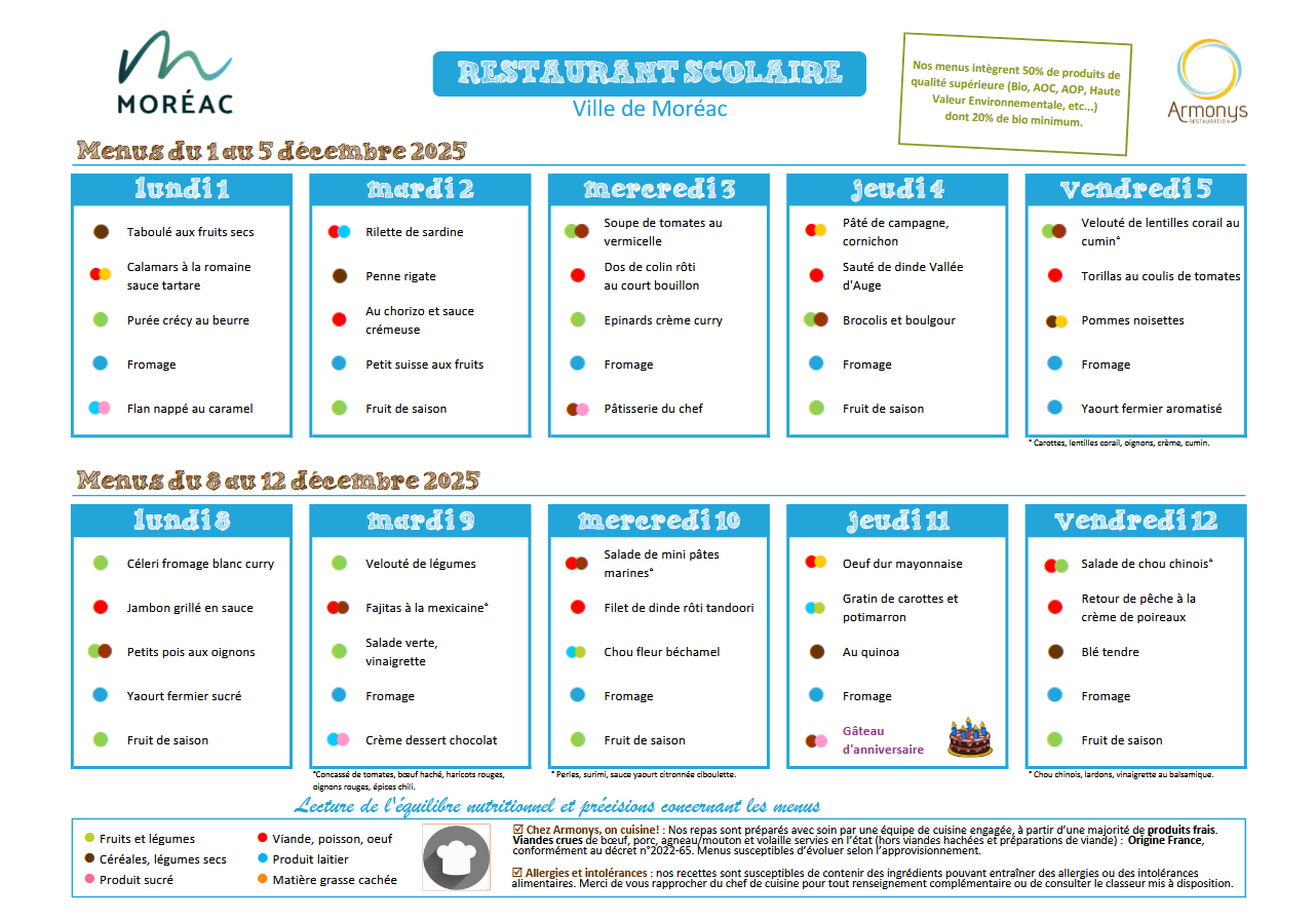 Retrouvez en téléchargement sur cette page les menus de la semaine !