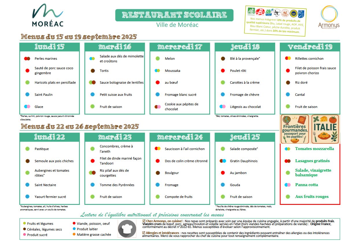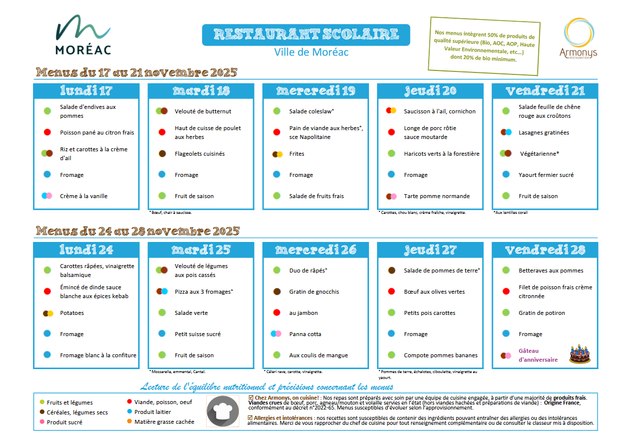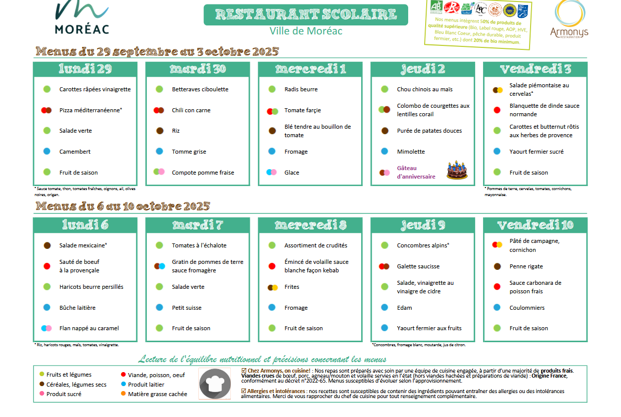 Retrouvez en téléchargement sur cette page les menus de la semaine !