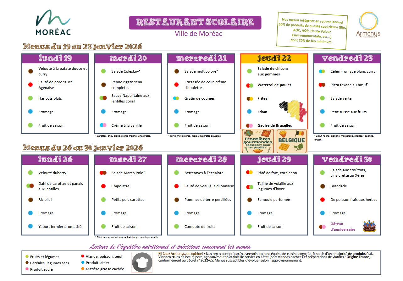 Menus du 19 au 30 janvier 2026
